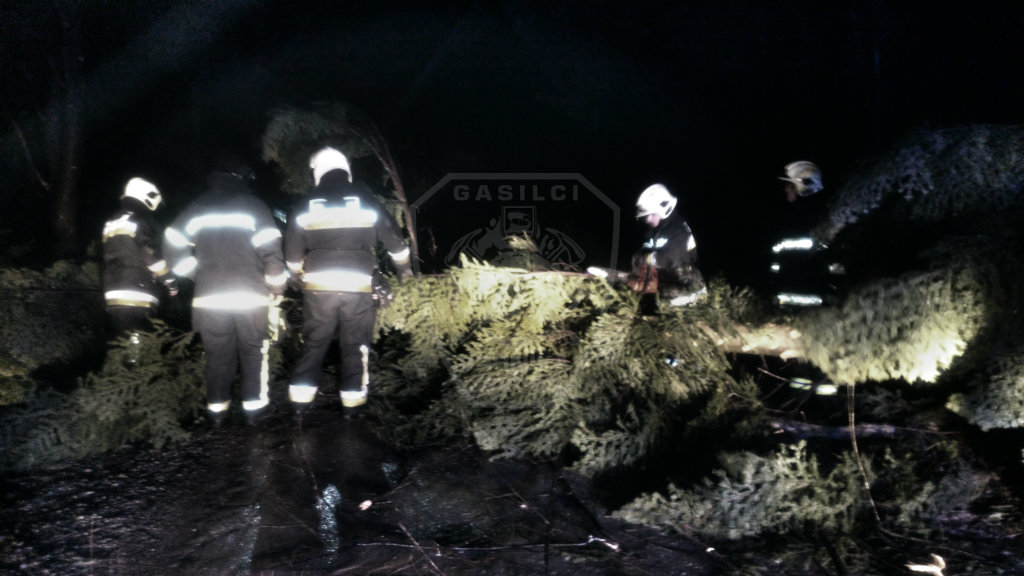 Ob 17.34 so se na cesto Verd–Pokojišče, občina Vrhnika, podrla drevesa in zaprla promet. Na cesti sta ostali ujeti dve vozili, katerima so pot odprli gasilci iz PGD Verd, Vrhnika in Stara Vrhnika. Gasilci so na obeh straneh ceste odmaknili in požagali 7 dreves.