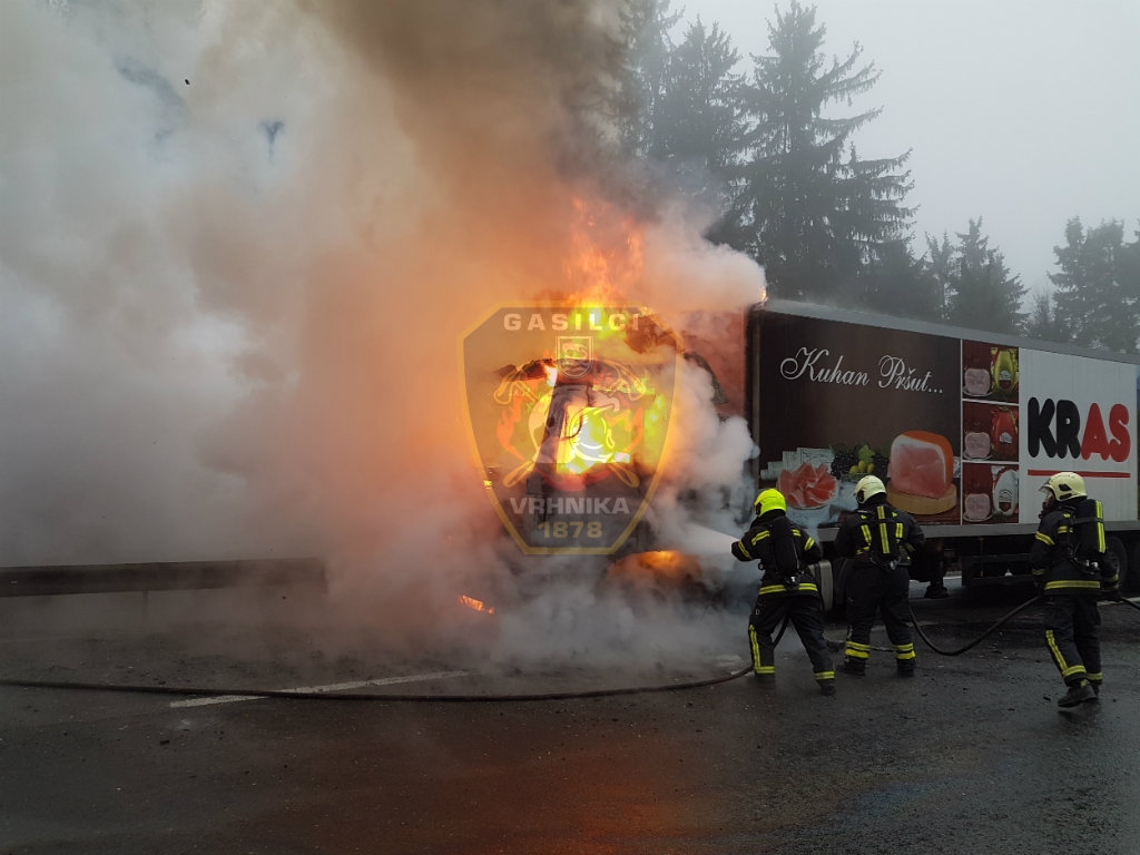 Ob 8.19 je na AC Ljubljana – Koper v bližini Štampetovega mosta zagorelo tovorno vozilo. Gasilci PGD Vrhnika, PGD Verd in PGD Stara Vrhnika so na kraju dogodka ugotovili, da je šlo za okvaro turbine na motorju. Zavarovali so kraj, pregledali vozilo s termo kamero in posuli cestišče z vpojnim sredstvom.