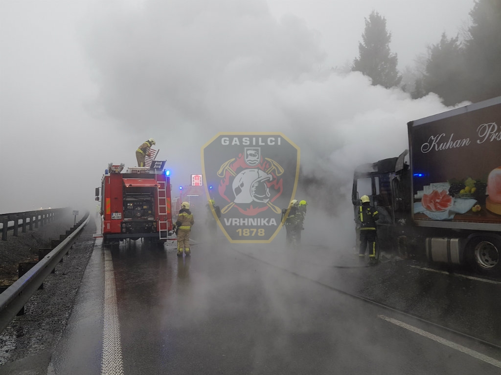 Ob 13.55 je na avtocesti Ljubljana–Postojna pred Štampetovim mostom v občini Vrhnika zagorel tovornjak hladilnik. Požar se je hitro razširil po kabini in zajel tudi tovorni del. Posredovali so gasilci GB Ljubljana, PGD Stara Vrhnika, Vrhnika in Verd, ki so požar pogasili. Zgorela sta motor in kabina vozila, gasilcem pa je uspelo v tovornem delu zaščitit pred popolnim uničenjem sveže pršute. Gasilci PGD Verd so prečrpali tudi okoli 400 litrov goriva iz poškodovanega rezervoarja.