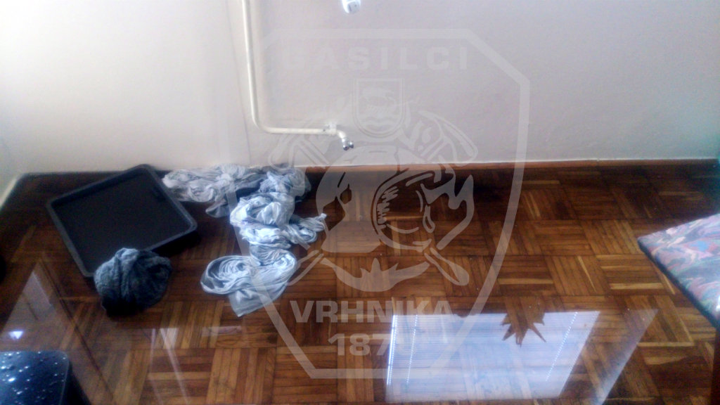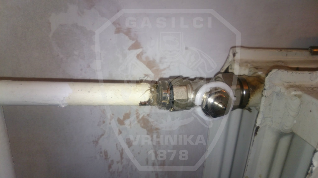 Ob 6.07 je v Gradišču, občina Vrhnika, voda iz počene cevi za centralno kurjavo poplavljala stanovanje in zamakala tudi spodnje stanovanje. Gasilci PGD Vrhnika so zaprli ventil na radiatorju, počistili izteklo vodo in po ponovnem pozivu odšli še premakniti kavč.
