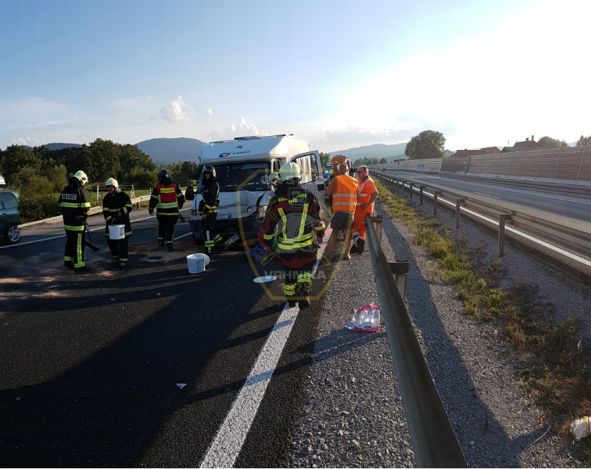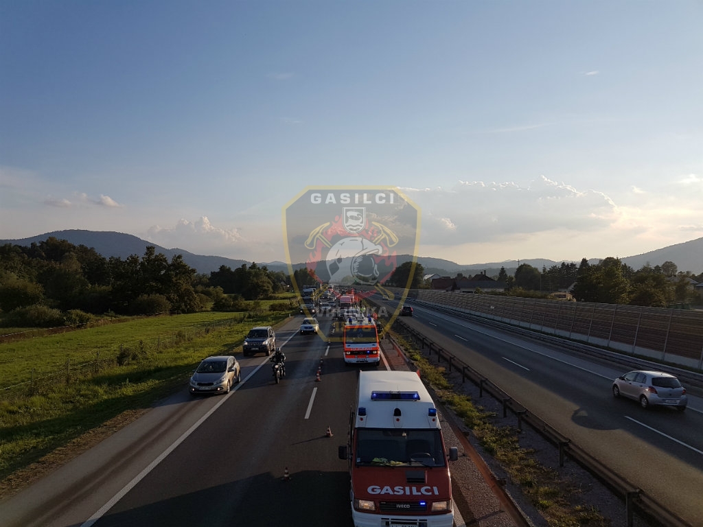 Ob 17.55 uri je prišlo do verižnega trčenja avtodoma, dveh osebnih in dveh kombiniranih vozil na AC Postojna – Ljubljana, okoli 500 m od priključka Vrhnika, občina Vrhnika. Gasilci PGD Vrhnika, Stara Vrhnika, Verd in GB Ljubljana so zavarovali mesto nesreče, zagotavljali prvo oskrbo ponesrečencev, odklopili akumulatorje, posuli razlite motorne tekočine z vpojnimi sredstvi in nudili pomoč avtovleki pri nalaganju poškodovanih vozil. V nesreči poškodovane osebe so pregledali in oskrbeli reševalci RP Ljubljana in ZD Vrhnika. Tri osebe so bile prepeljane v nadaljnjo oskrbo v UKC Ljubljana.