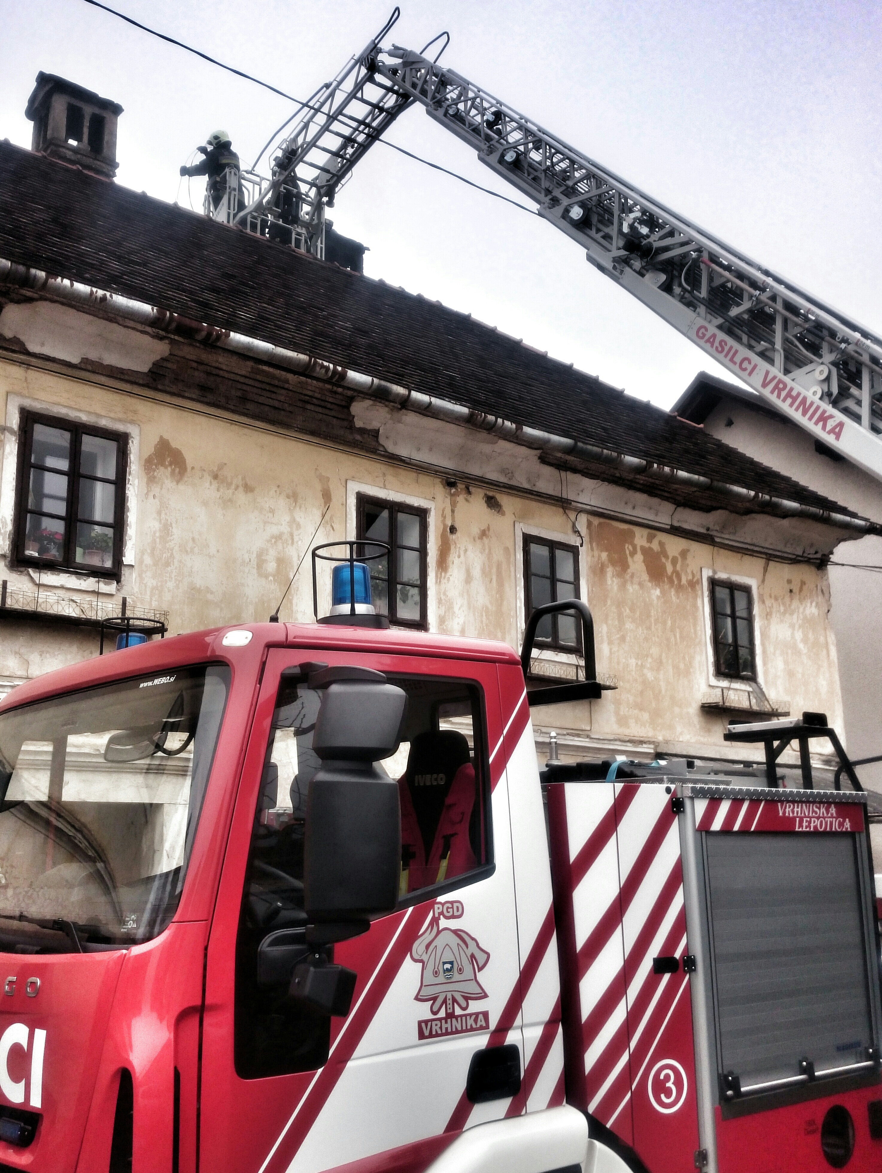 Ob 16.45 so zagorele saje v dimniku stanovanjske hiše na Hribu v očini Vrhnika. Posredovali so gasilci PGD Vrhnika, ki so pogasili požar, očistili dimnik in iznesli žerjavico iz peči. Lastniku so prepovedali kurjenje do prihoda dimnikarske službe.