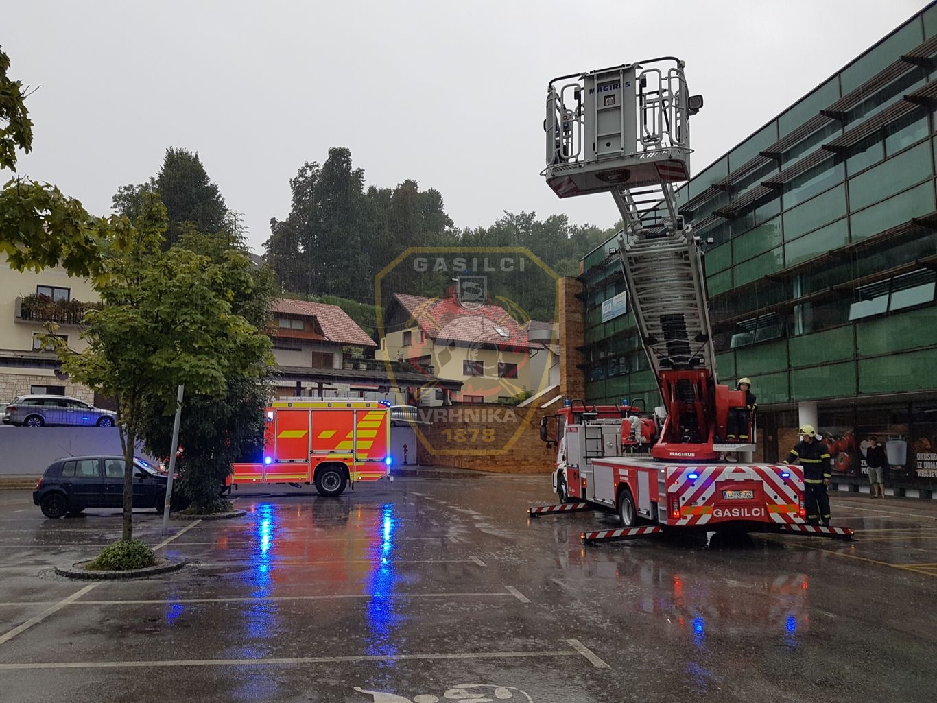V ponedeljek 24.7.2017 ob 17.30 je v poslovnem objektu na Robovi cesti voda zalila vsa nadstropja v objektu. Gasilci PGD Vrhnika in PGD Stara Vrhnika smo pregledali objekt, očistili žlebove in prepovedali gibanje v določenih delih objekta. Na kraju je bila prisotna tudi policija.